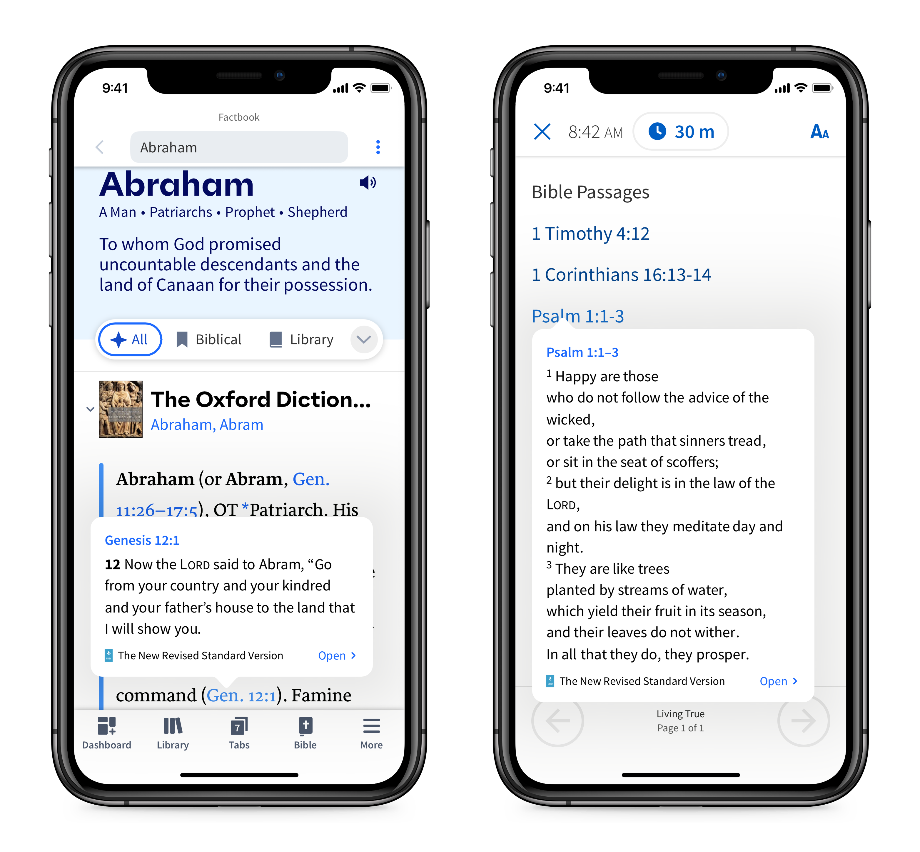 See all your books from Factbook. Haven’t downloaded it from the cloud? No problem. Is it sitting on your office bookshelf, and you’ve scanned it into your Print Library Catalog? No problem.Tapping an Insights card used to take over your whole screen—hiding your Bible. Now, a single tap expands the card within Insights, so you can dig into the details and keep your Bible in view.