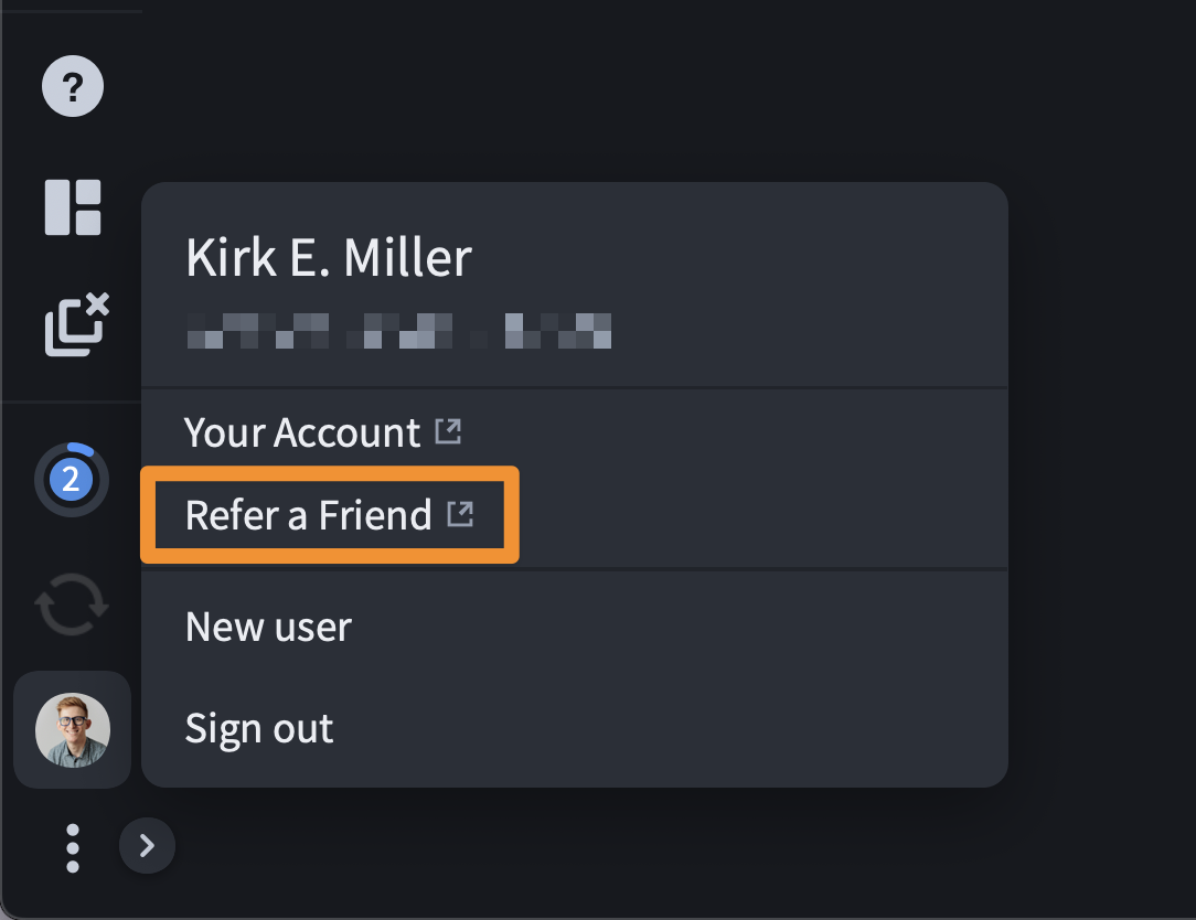 The new “Refer a friend” option is now conveniently located right in your account menu on the desktop app and web app. When you share, you and your friends both benefit.