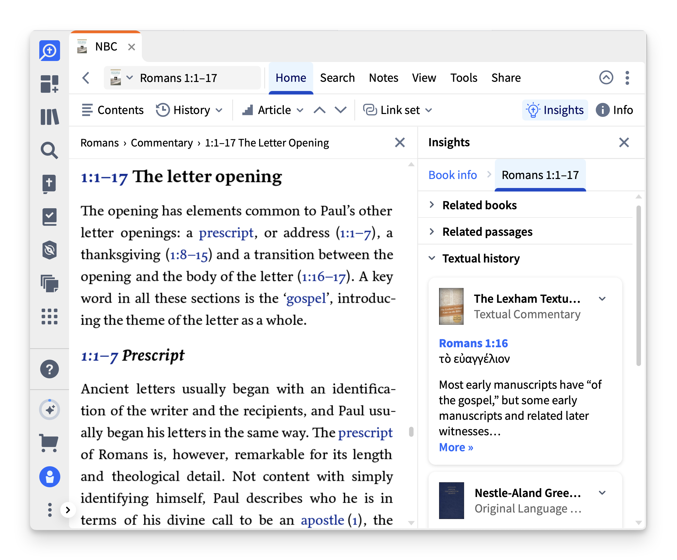 The original Insights panel gave you the freedom to keep your Bible open and get helpful info for interpretation at a glance. Now you can do the same from study Bibles and commentaries. Max users have a new Textual History section, too.Referring to sermons can be a valuable aspect of your own study. This release brings the Outlines section to the Sermons section of Factbook so you don’t have to break your flow of thought to search your library.