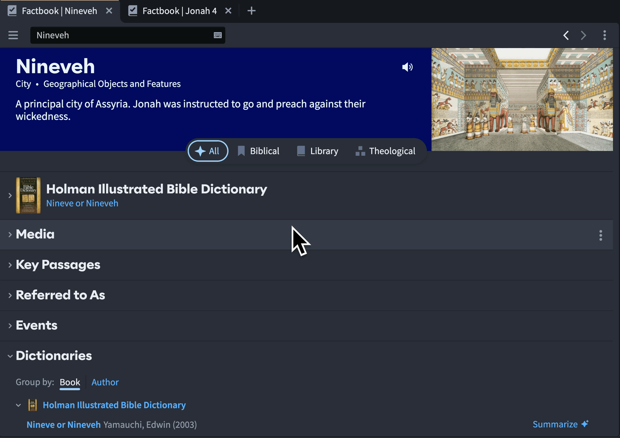 In Factbook, a cleaner arrangement (and article previews) means it’s easier to browse and decide where to focus your reading. And our powerful Summarize tool now works on your Journals and Sermons.
